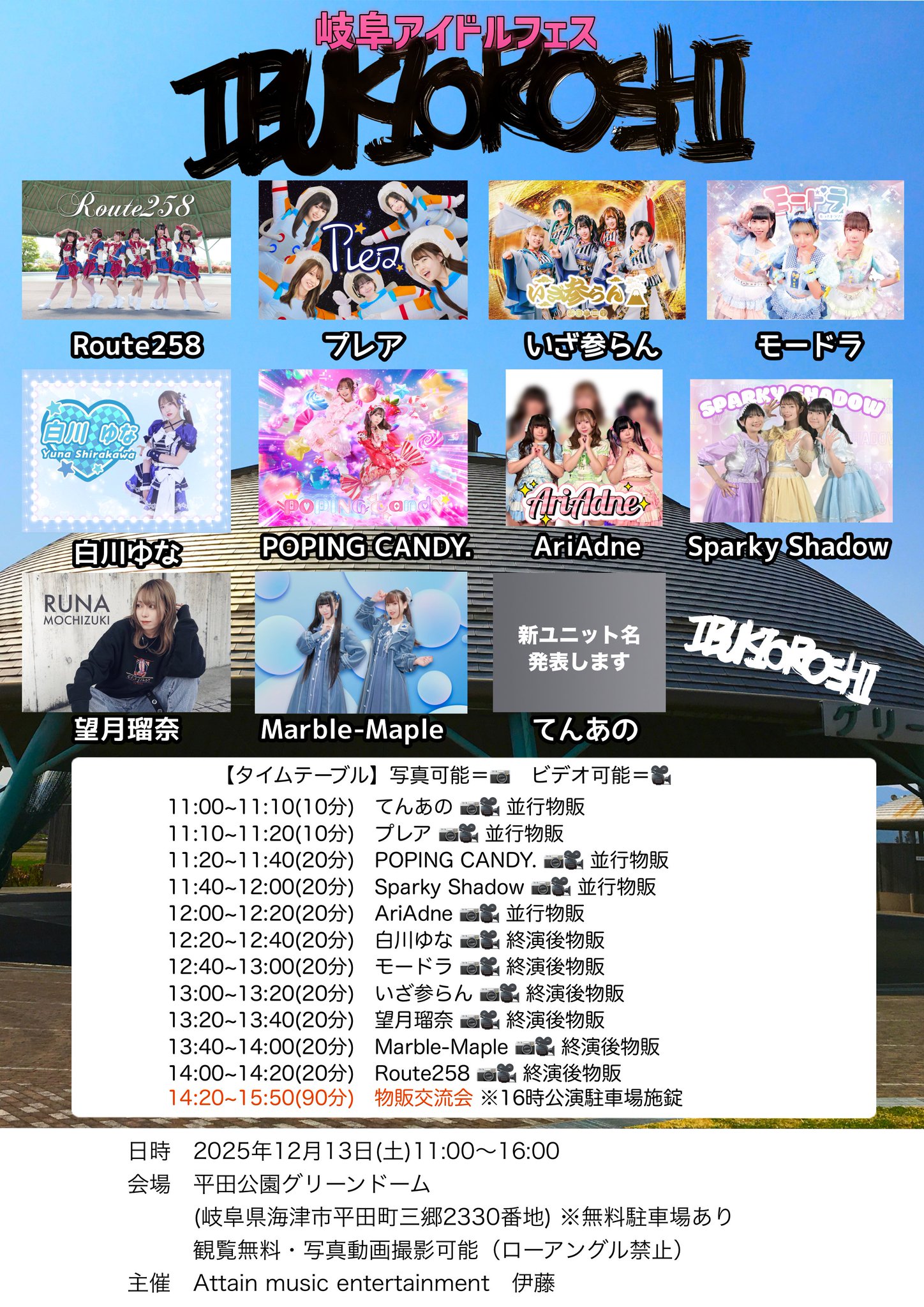 出演グループ/Route258/プレア/モードラ/いざ参らん/てんあの/Sparky Shadow/AriAdne/白川ゆな/POPING CANDY./Marble-Maple/望月瑠奈